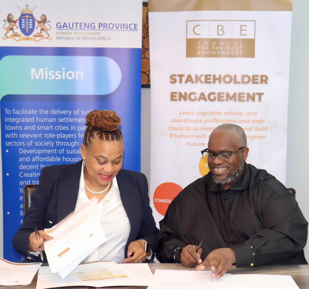 The Council for the Built Environment (CBE) and the Gauteng Department of Human Settlements (GDHuS) signed a Memorandum of Agreement (MoA) to implement the Gauteng Department of Human Settlements Professionalisation Programme for Built Environment Practitioners. The MoA formalises a strategic partnership between the two entities…