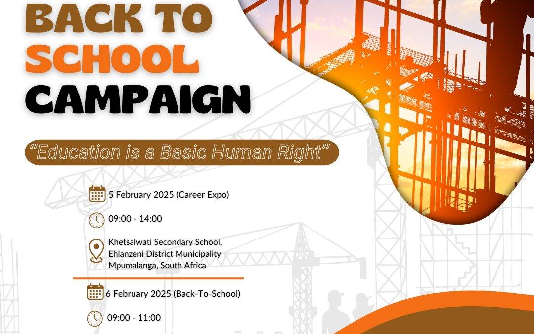 The Council for the Built Environment (CBE) is excited to announce our Back-to-School Campaign, under the theme “Education is a Basic Right.” The theme underscores CBE’s commitment to diversity and inclusion in the sector by encouraging more young learners to pursue mathematics and science subjects. The campaign commences with a career expo on 5 February 2025, at Khetsalwati Secondary School in the Ehlanzeni District Municipality, Mpumalanga, South Africa, and continues at Lundanda Primary School in the Ehlanzeni District Municipality on 6 February 2025.
