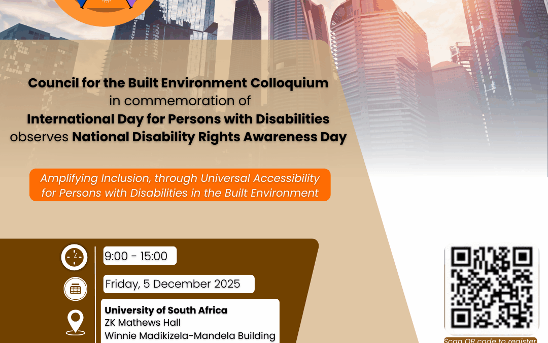 In South Africa, persons with disabilities continue to face structural barriers: inaccessible clinics and schools, public buildings without ramps or lifts, unsafe sidewalks for users of mobility aids, transport systems that do not accommodate diverse needs, and public facilities with signage that excludes those with low vision or hearing related disabilities. These barriers are not simply operational oversights. They represent failures in design thinking, regulatory compliance, professional ethics, and, most importantly, the meaningful inclusion of persons with disabilities in decision-making processes. The CBE 2025 Built Environment Annual Colloquium asserts that the future of the profession must be built on an unwavering commitment to human-centred and rights-based design, where disability inclusion becomes a default requirement rather than an afterthought.