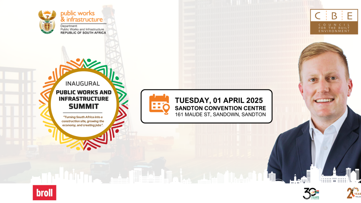 The Council for the Built Environment (CBE), an entity of the Department of Public Works and Infrastructure will, on 01 April 2025 host the Inaugural Public Works Infrastructure Summit. Minister of Public Works and Infrastructure, Mr. Dean Mcpherson will deliver the keynote address.