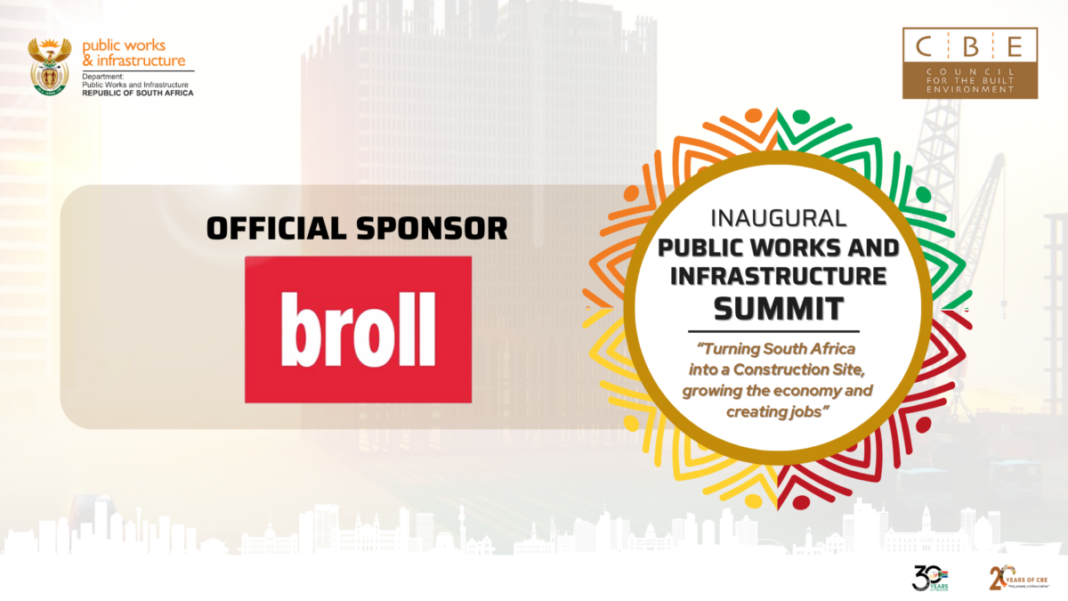 The Council for the Built Environment (CBE), an entity of the Department of Public Works and Infrastructure (DPWI) responsible for regulating the built environment professions, is pleased to announce its official sponsorship agreement with Broll Property Group (Broll). As one of Africa’s leading commercial property service companies and a majority black-owned business, Broll is proud to be a strategic partner for the Inaugural Public Works & Infrastructure Summit, taking place on 1 April 2025 under the theme: “Turning South Africa into a Construction Site: Growing the Economy and Creating Jobs.”