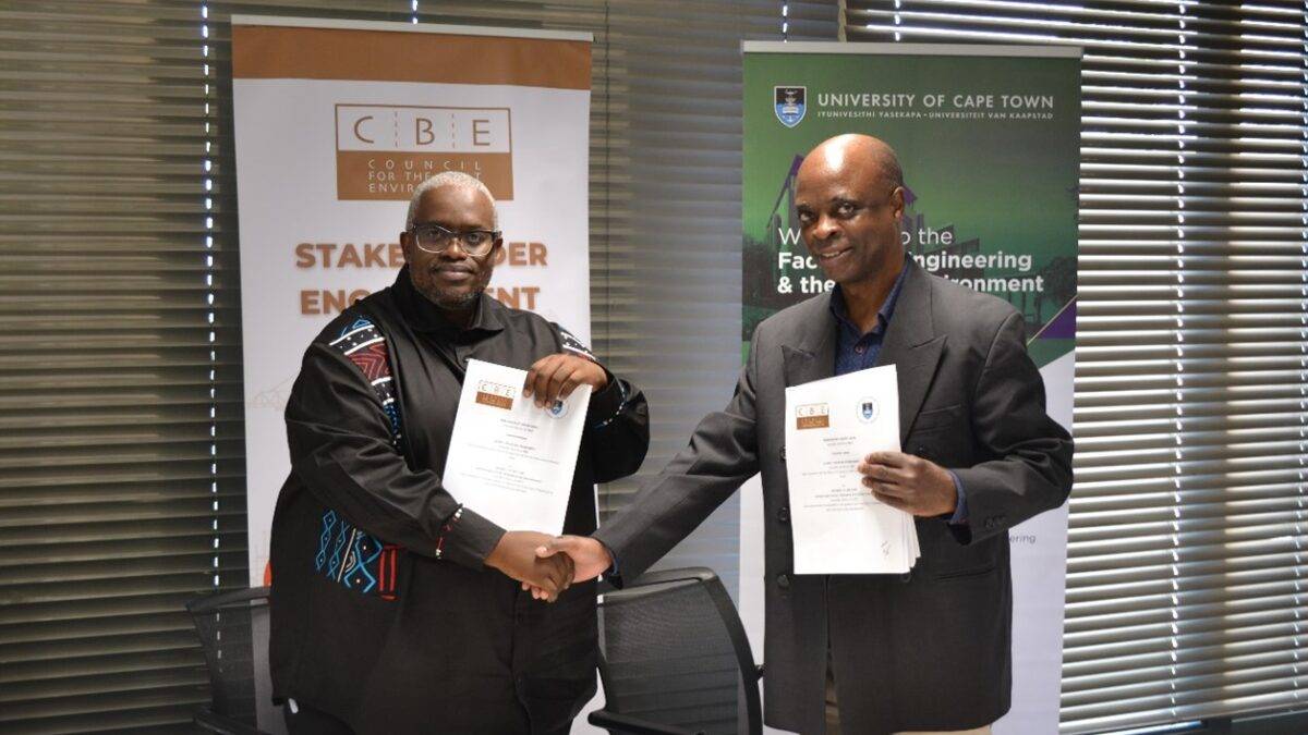 The Council for the Built Environment (CBE) and the University of Cape Town’s Faculty of Engineering & the Built Environment (UCT) signed a Memorandum of Understanding on 29 September 2025, that will redefine the relationship between academia, government, and the built environment sector.